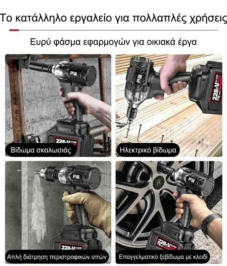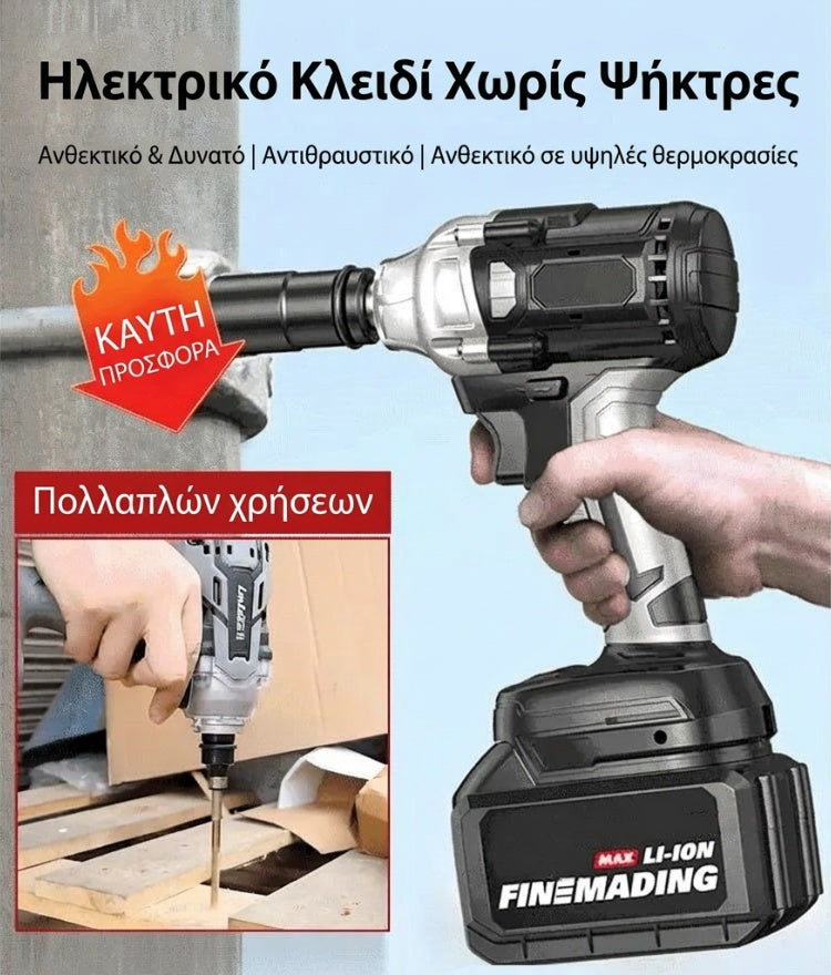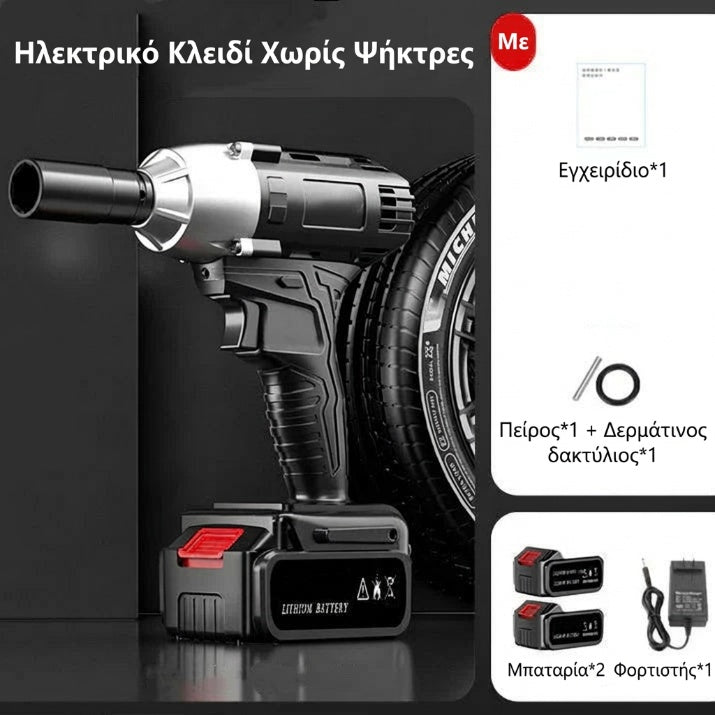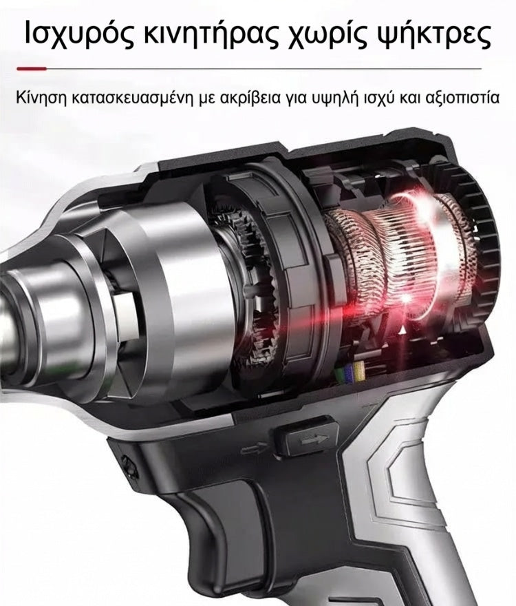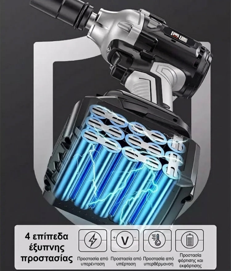 Ασύρματο κρουστικό κλειδί 1/2'' χωρίς ψήκτρες υψηλής ροπής με 2 μπαταρίες και ταχυφορτιστή