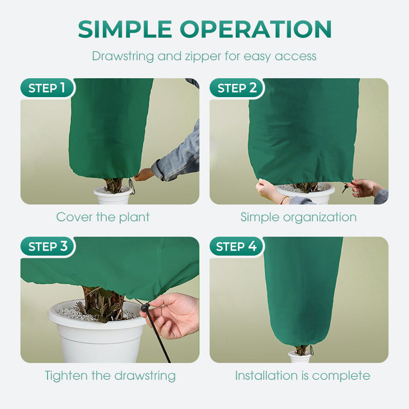 LETT TILGANG – Utstyrt med praktisk snøring og glidelås. Denne designen gir enkel påføring, fjerning og rask tilgang til planter for vanning eller vedlikehold, noe som forbedrer brukeropplevelsen.