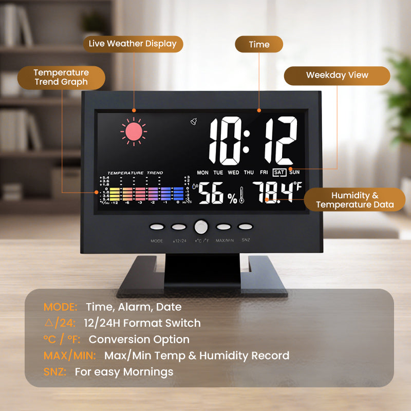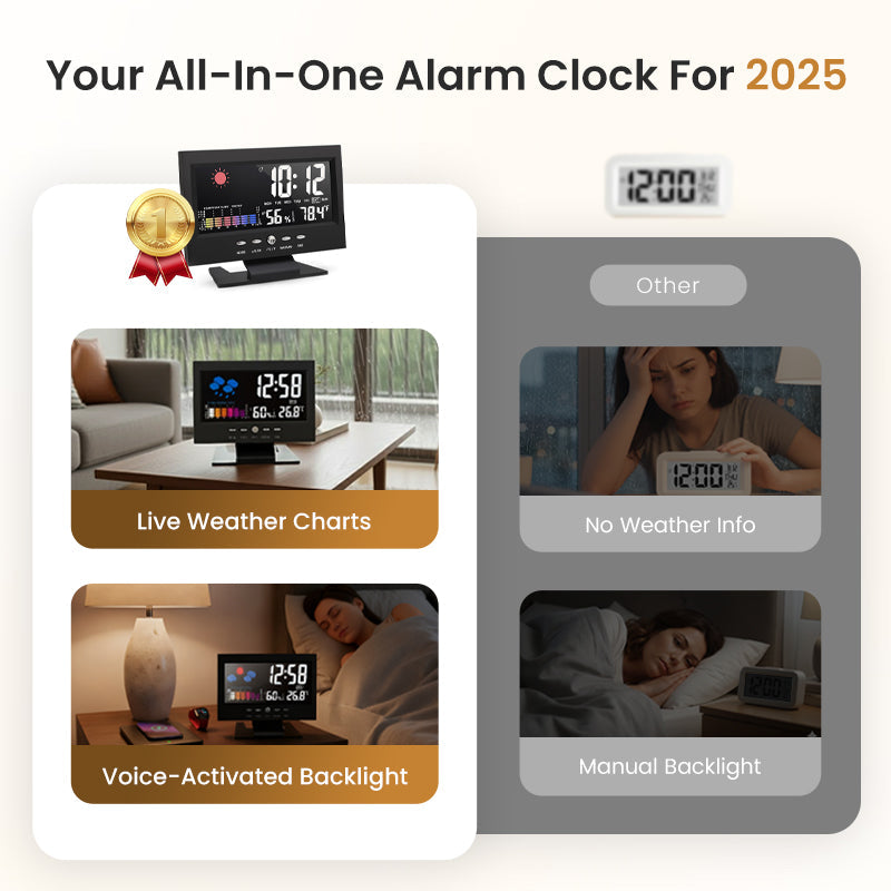 🔥Digital LED-temperatur- og fuktighetsmåler Værvarsel LED-bordvekkerklokke