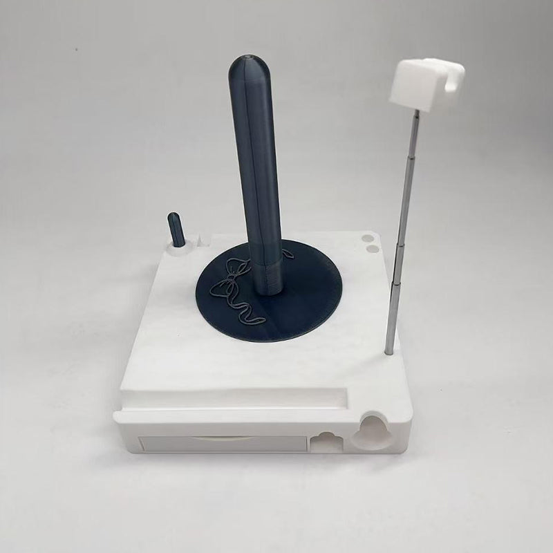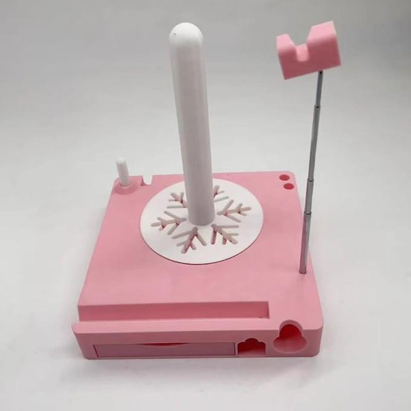 NO-TANGLE, NO-FUSS SETUP - Transform this compact box into a full spinning station in seconds—simply pop out the built-in spool holder onto its rotating base. Load multiple skeins onto the sturdy center post, while the adjustable side arm neatly feeds strands without crossing.