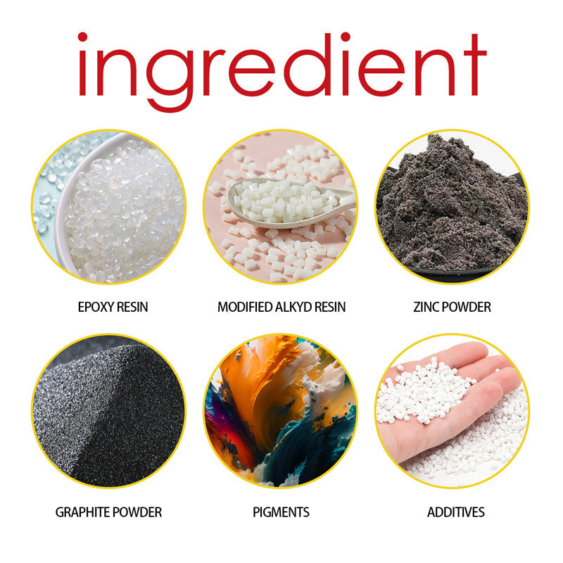 Ingredients: Epoxy resin, modified alkyd resin, zinc powder, graphite powder, pigments, additives.