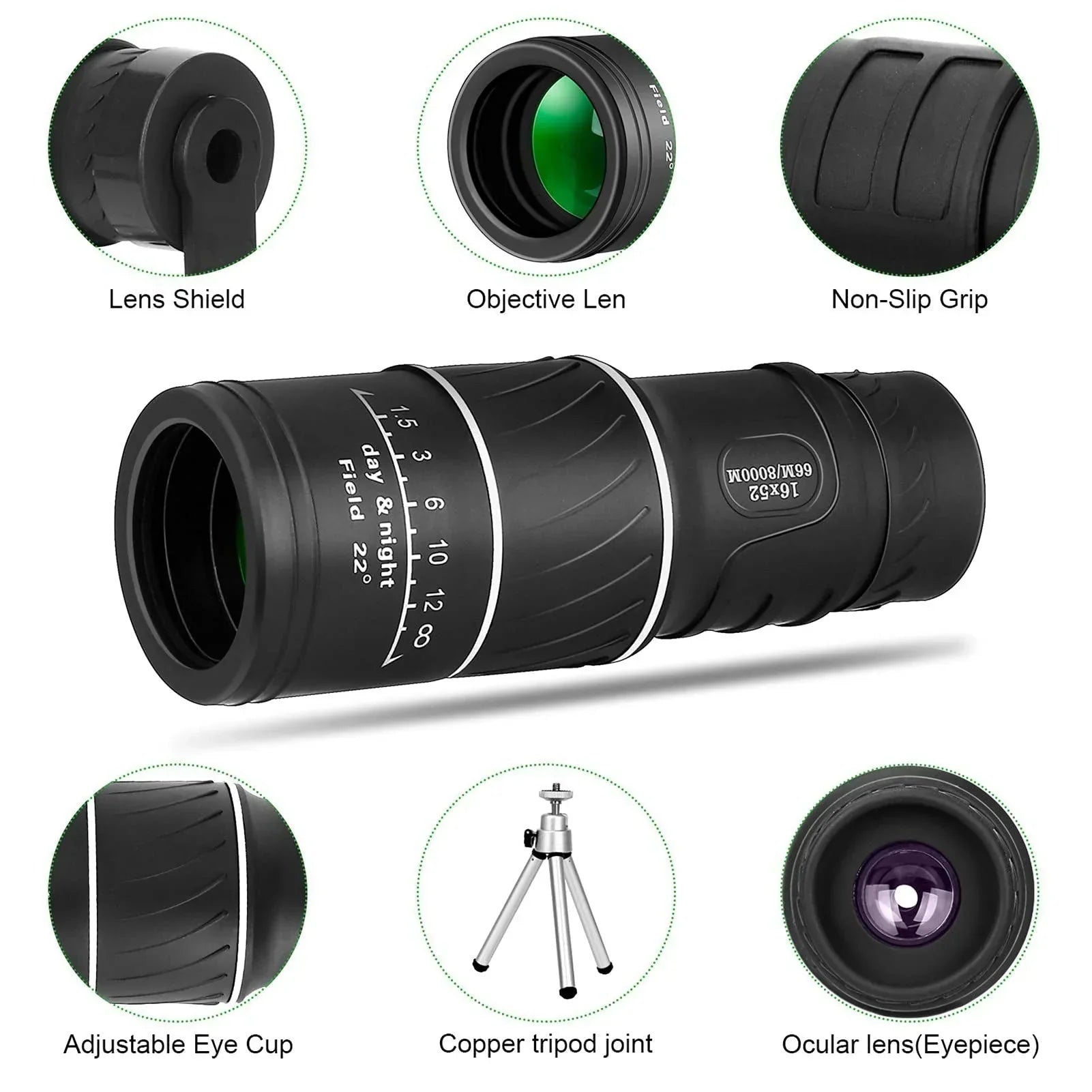 16X52 Monokulært teleskop med bifokal optisk zoom